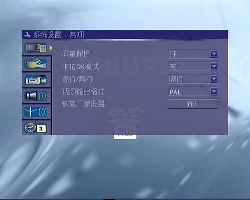 同樣采用了大多數(shù)DVD相同的圖形界面,包括通用設(shè)定,音響設(shè)定,視頻設(shè)置等個性化設(shè)置。