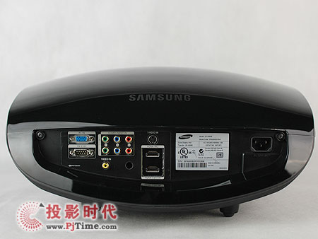 在投影機(jī)的機(jī)身正、背兩面我們都可以看到三星的個性字樣LOGO,白色的字體在炫黑的鋼琴烤漆材質(zhì)的機(jī)身上格外顯眼也格外大氣。