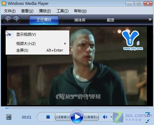WMP11主界面上方雖然有工具欄,但是右鍵菜單顯得太過單薄,僅有視頻窗口大小調(diào)整。