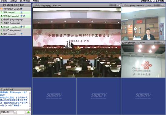東聯(lián)通借助視維SuperV-視頻通訊專家,成功搭建了一個(gè)遠(yuǎn)程視頻互動平臺。該系統(tǒng)為廣州聯(lián)通公司的遠(yuǎn)程溝通交流和內(nèi)部業(yè)務(wù)培訓(xùn)提供了極大的便利。08年聯(lián)通廣東分公司通過SuperV視頻會議,召開全公司工作年會。會議過程中副省長佟星、通信管理局局長古偉對08年廣東通信事業(yè)的發(fā)展做了詳細(xì)的部署,廣東聯(lián)通各部門和各地分公司認(rèn)真學(xué)習(xí)了會議精神,為“數(shù)字化廣東”的發(fā)展提供了良好的溝通平臺。