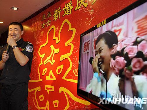 青島特警王學(xué)峰與新娘李麗華原定于2008年8月8日舉行婚禮,由于王學(xué)峰參加奧運(yùn)安保未能如愿,婚禮推遲到2009年8月8日。2009年7月8日,王學(xué)峰又隨隊(duì)來(lái)到烏魯木齊執(zhí)行任務(wù),為了不讓這場(chǎng)婚禮一拖再拖,青島特警支隊(duì)決定如期為他們舉行婚禮。8月8日當(dāng)天,朝鮮族新娘李麗華身著民族服飾與剛剛執(zhí)勤完任務(wù)還來(lái)不及脫下戎裝的王學(xué)峰,分別通過(guò)電視電話會(huì)議系統(tǒng),進(jìn)行了這場(chǎng)特殊而又隆重的婚禮。