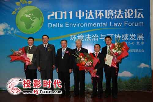 中國工程院錢易院士(左三)、臺達基金會董事李念祖律師(左一)等嘉賓分別為來自兩岸高校41位 “2011年中達環(huán)境法學位論文獎學金”獲獎博碩士研究生代表進行了頒獎