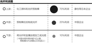 華為公司中國區(qū)網(wǎng)絡(luò)市場部一位人士對記者表示,以光纖為例,日本企業(yè)掌握的預(yù)制棒環(huán)節(jié)就占據(jù)了整個產(chǎn)業(yè)鏈的約70%的利潤。據(jù)其介紹,生產(chǎn)一根光纜主要經(jīng)過三個工序:生產(chǎn)高純度的二氧化硅(預(yù)制棒);把預(yù)制棒拉絲形成光纖;把光纖加上承重材料、套上橡膠形成光纜,而這三個環(huán)節(jié)的利潤占比分別為70%:20%:10%。此前,中國企業(yè)主要集中在后面兩個環(huán)節(jié),占據(jù)利潤大頭的預(yù)制棒主要依靠從日本進口,直到近年來才通過與日本藤倉等企業(yè)成立合資公司的形式解決了部分預(yù)制棒的產(chǎn)能。