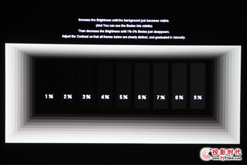灰階對比度測試中,明基ES7181實際測試的表現(xiàn)不俗,在配合3000流明亮度以及13000:1的對比度下,相鄰方塊基本都能輕易區(qū)分出來,完全能滿足各類型商務會議應用需要。同時,由于灰階度高,其對于黑白照片及黑暗場景解析度自然也更加出色。