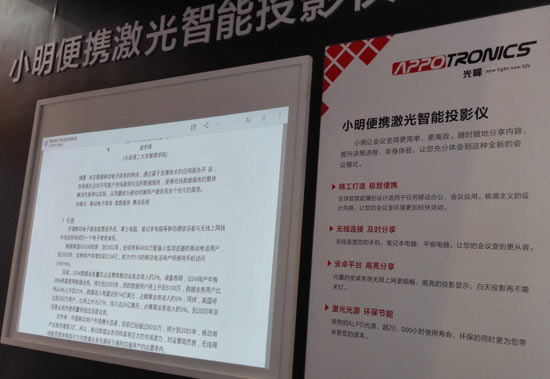 于4月8日在北京國家會(huì)議中心召開的2015 Infocomm展會(huì)上,光峰光電基于首創(chuàng)顛覆性ALPD激光技術(shù)相關(guān)系列新品高調(diào)亮相,其中一款取名為“小明便攜激光投影儀”的超薄商務(wù)投影儀吸引了很多人的關(guān)注。其以小巧靈動(dòng)的機(jī)身和酷炫時(shí)尚的外觀博得了不少眼球。