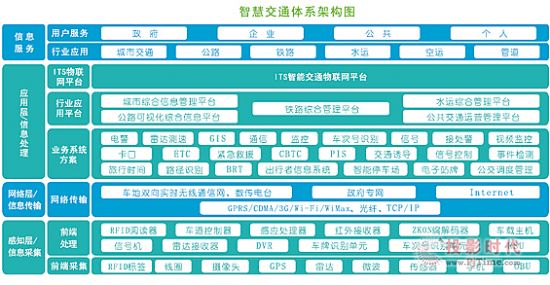 智能交通系統(tǒng)體系基于5大基本技術(shù),建立起一種大范圍內(nèi)、全方位發(fā)揮作用的,實(shí)時(shí)、準(zhǔn)確、高效的綜合運(yùn)輸和管理系統(tǒng)架構(gòu)。