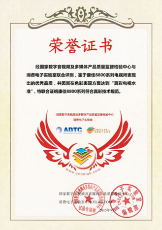 值得一提的是,近日康佳8800系列冰冰電視因優(yōu)秀的品質并在色彩方面達到“真彩電視水準”,由國家數(shù)字音視頻及多媒體產品質量監(jiān)督檢驗中心與消費電子實驗室聯(lián)合評測,并認定其符合真彩技術規(guī)范,8800系列成為行業(yè)里為數(shù)不多獲此榮譽的產品。