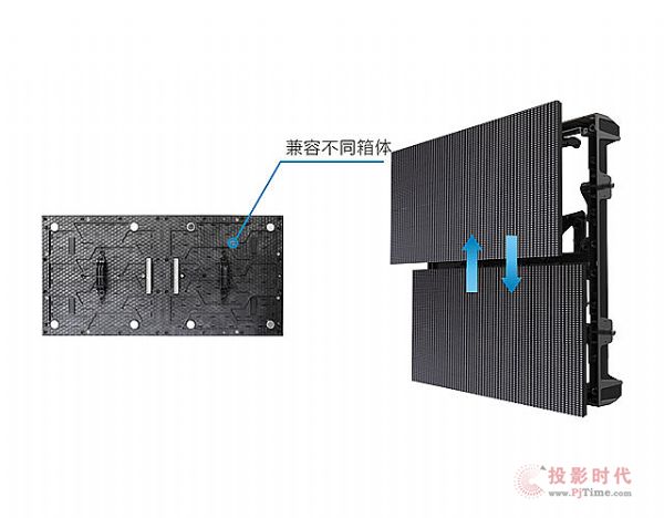 EI-Plus單個箱體模組尺寸為250mm*500mm,不分上下模組,可通用,能顯著提升了維護和安裝效率,節(jié)省了客戶使用成本。同時,同個箱體可以更換P2.5\2.94\3.9點間距模組,實現一屏多用。