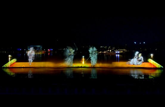 目前,白鷺湖水幕投影成功通過了吉尼斯的官方認證,獲得全球第一大水幕投影的殊榮。據(jù)漢合天辰(廈門)科技有限公司總經(jīng)理、項目總導演羅力華介紹,“該項目采用了3臺NEC 40000流明4K雙色激光工程機,最終實現(xiàn)了長150米、高25米的水幕整體效果,總投影面積達1582平方米!