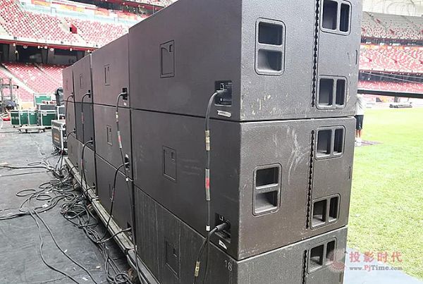 為了讓鳥巢上層位置的聽眾獲得更好的聲音覆蓋,全場環(huán)繞觀眾席吊掛了L-AcousticsK1、K2。