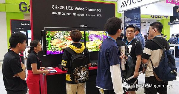 在4K展示區(qū)域,由邁普視通研發(fā)的LED-W4000系列視頻處理器,展示8Kx2K超大分辨率點(diǎn)對(duì)點(diǎn)視頻拼接方案;預(yù)監(jiān)切換,HDR,4圖層,支持?jǐn)U展等功能吸引了眾多客戶的眼球。