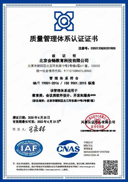 三大認(rèn)證的取得,標(biāo)志著會暢教育的各項管理系統(tǒng)以及產(chǎn)品質(zhì)量都達到了國際標(biāo)準(zhǔn),再加上國際權(quán)威第三方認(rèn)證機構(gòu)的嚴(yán)格審核和有力監(jiān)督,確保了會暢教育將持續(xù)穩(wěn)定地向客戶提供滿意的合格產(chǎn)品和服務(wù)。