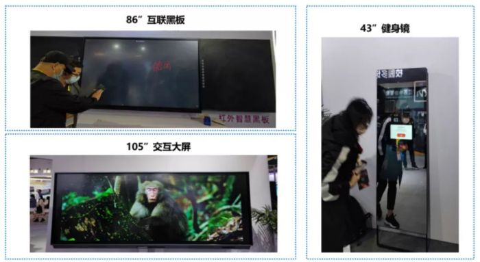 從會議交互大屏領(lǐng)域向外延伸,展出86寸紅外互聯(lián)黑板、105寸交互大屏及43寸健身鏡等產(chǎn)品。