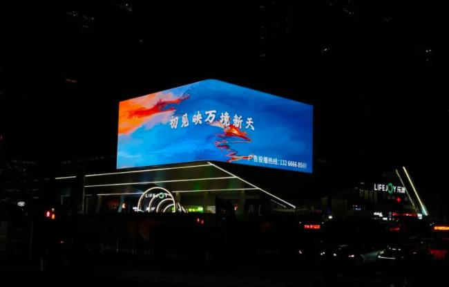 三思裸眼3D屏,具備鮮艷的色彩、細膩的細節(jié)、高清的畫面,為往來觀眾造就了震撼的沉浸式體驗。畫面內(nèi)容炫彩多姿、變幻無窮,在霓虹燈火中上演著一場場創(chuàng)意show。遠遠望去,不論是人或物仿佛就要沖破畫面而出,與現(xiàn)實空間形成了強互動,其栩栩如生的程度,讓觀眾無不為其駐足、贊嘆。