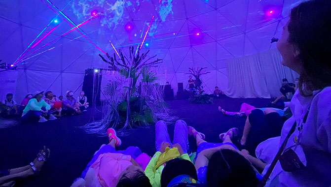 名為《涅布拉——元素照亮星球》的獨(dú)特音視頻展示在一個直徑15米、高8米的充氣式穹頂中進(jìn)行。它運(yùn)用了各種技術(shù),包括數(shù)臺Christie D20WU-HS激光投影機(jī)、交互式照明、激光效果、以及逼真的道具,讓游客體驗(yàn)激動人心的宇宙奇觀。此概念受到賣座電影《阿凡達(dá):水之道》的啟發(fā),并由科視 Christie 值得信賴的合作伙伴Alta Media負(fù)責(zé)構(gòu)思和執(zhí)行,該公司擅長系統(tǒng)集成、數(shù)字內(nèi)容和演出娛樂技術(shù)。