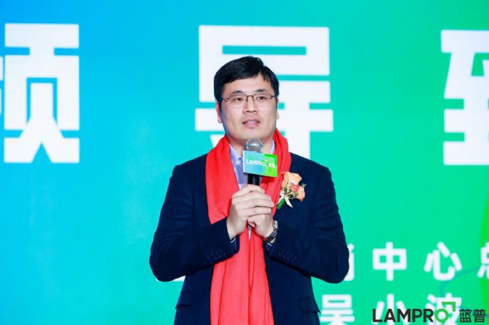 隨后,集團常務(wù)副總裁武建濤先生通過線上視頻向與會的合作伙伴送上了遠隔重洋的問候,武總表示藍普品牌的升級我們籌備了一年之久,并全面解讀了新的藍普品牌在集團業(yè)務(wù)戰(zhàn)略中承擔的新使命,以及藍普最終選擇綠色作為主色系背后的故事。