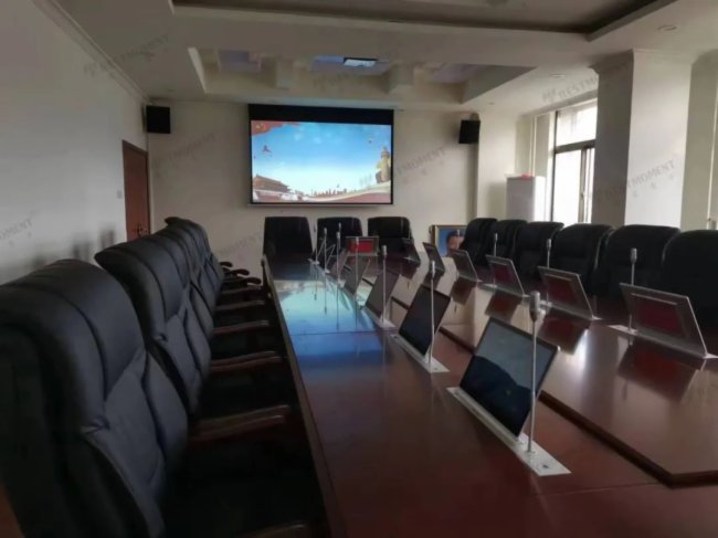 雷蒙電子經(jīng)過與用戶的深入了解,為西藏自治區(qū)某市委會議室裝備全數(shù)字會議系統(tǒng)和無紙化會議系統(tǒng),15.6寸雙屏話筒升降一體終端RX-D6102/H系列、RX-3100系列、功放等等全套會議設(shè)備,全面提高辦公效率。