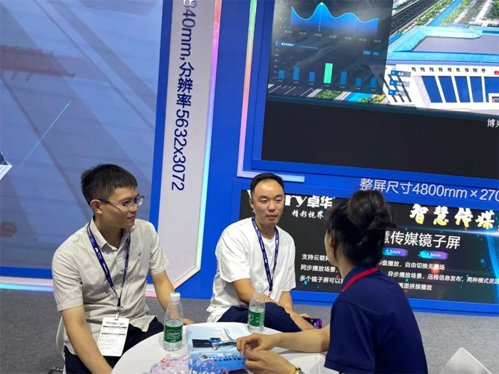 Voury卓華在E4館EL1-01超高清展區(qū)采用COB封裝LED顯示屏產(chǎn)品實(shí)現(xiàn)了眾多精彩應(yīng)用方案,引得眾多客戶前來圍觀、洽談。