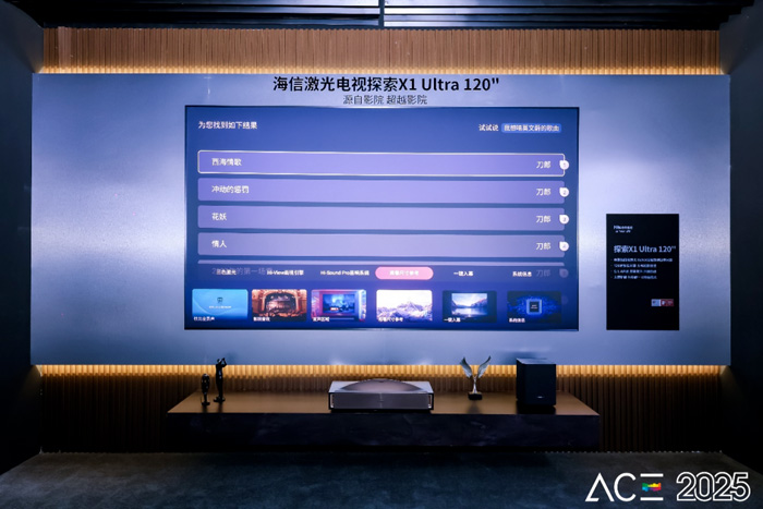 本次ACE2025展會,海信除了展出全球最大的116英寸RGB-Mini LED電視UX,給用戶帶來影院級體驗的海信激光電視新品同樣非常搶眼。海信激光電視探索X1 Ultra首次將影院級放映技術融入家用場景,它搭載與IMAX級影院同源雙MCL39激光器,配合14.5°SST架構DMD芯片,使電視畫面解析力與色彩還原度均達到專業(yè)影院水準,再加上納米光譜選擇屏的應用,全屏穩(wěn)定亮度可達1000nits,環(huán)境光遮蔽率高達87%,在全天候環(huán)境下畫面均能保持高亮通透,呈現(xiàn)出IMAX影院級畫質。