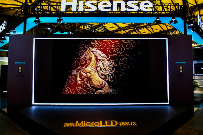 在現(xiàn)場亮相的163英寸 Micro LED 巨幕極具亮點,它搭載2488萬顆Micro LED自發(fā)光芯片,每一顆都能獨立發(fā)光,像素控光精度堪比顯微鏡級別,實現(xiàn)了近乎無限的對比度與色彩還原能力,即使在強光環(huán)境下仍能保持畫面細節(jié)清晰可見。該產(chǎn)品有著32mm超薄機身,支持 “零貼墻” 安裝,在音效方面,聯(lián)手法國帝瓦雷打造的5.1.4聲道音響系統(tǒng),24個發(fā)聲聲道,帶來了極致沉浸的音畫體驗,成為豪宅客廳、商業(yè)展廳等場景的絕佳顯示方案。
