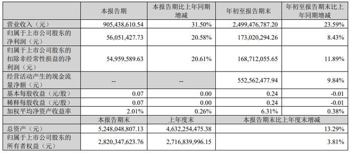 2025年10月14日晚間,聚燦光電發(fā)布2025年第三季度財(cái)報(bào)。前三季度,公司實(shí)現(xiàn)營(yíng)業(yè)收入 249,947.68 萬元,同比增長(zhǎng) 23.59%;實(shí)現(xiàn)歸屬于上市公司股東的凈利潤(rùn) 17,302.03 萬元,同比增長(zhǎng) 8.43%;實(shí)現(xiàn)歸屬于上市公司股東的扣除非經(jīng)常性損益的凈利潤(rùn) 16,871.21 萬元,同比增長(zhǎng) 11.89%,實(shí)現(xiàn)經(jīng)營(yíng)活動(dòng)產(chǎn)生的現(xiàn)金流量?jī)纛~ 55,256.25 萬元,同比增長(zhǎng) 9.84%。以上數(shù)據(jù)均創(chuàng)同期歷史新高。