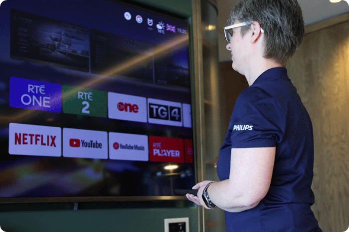 Michael Brennan,酒店董事總經(jīng)理:“MediaSuite電視滿足了我們?yōu)榭腿怂璧囊磺校撼錾漠嬞|(zhì)、全新的客信系統(tǒng)、內(nèi)置投屏功能,以及與物業(yè)管理系統(tǒng)的高效鏈接!