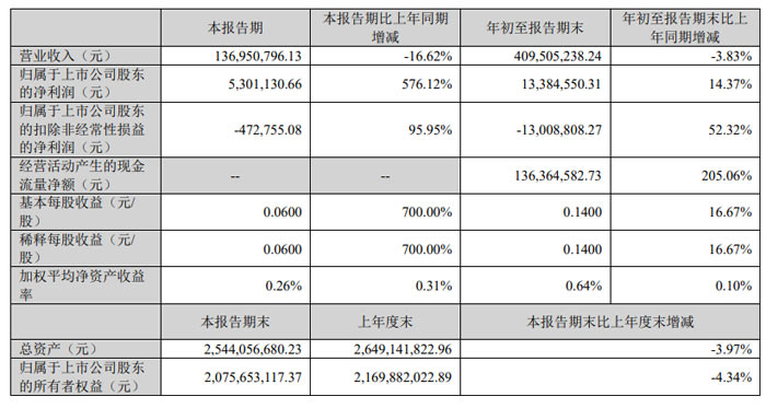 從年初至報(bào)告期末(1-9 月),公司累計(jì)實(shí)現(xiàn)營(yíng)業(yè)收入 4.10 億元,較上年同期下降 3.83%,降幅較單季度收窄,業(yè)務(wù)逐步企穩(wěn);累計(jì)歸屬于上市公司股東的凈利潤(rùn) 1338.46 萬(wàn)元,同比增長(zhǎng) 14.37%,持續(xù)保持盈利增長(zhǎng)態(tài)勢(shì)。值得關(guān)注的是,盡管累計(jì)歸屬于上市公司股東的扣除非經(jīng)常性損益的凈利潤(rùn)為 - 1300.88 萬(wàn)元,但較上年同期提升 52.32%,扣非虧損幅度顯著收窄,主營(yíng)業(yè)務(wù)盈利能力正在逐步修復(fù)。