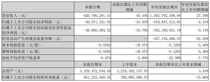 本報告期內(nèi),公司歸屬于上市公司股東的凈利潤為 - 1.09 億元,同比下降 511.59%;扣除非經(jīng)常性損益后的凈利潤為 - 1.42 億元,同比降幅達 376.72%。從累計數(shù)據(jù)看,1-9 月歸屬于上市公司股東的凈利潤虧損擴大至 6.02 億元,同比降幅 852.28%;扣非后凈利潤虧損 5.34 億元,同比降幅高達 1847.56%,反映出公司主營業(yè)務短期面臨較大盈利挑戰(zhàn)。