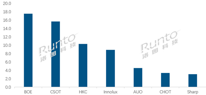 七廠商僅一家下跌;CSOT增幅行業(yè)第一;HKC重奪第三