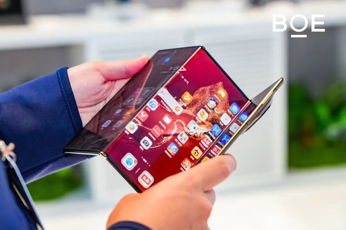 在f-OLED(高端柔性顯示)方面,全球首款三折手機(jī)采用膜層升級(jí)技術(shù),提高折疊性能,帶來(lái)更大的收納展開(kāi)比與極致的屏幕體驗(yàn);更有京東方全球首發(fā)搭載TADF+Tandem+COE聯(lián)合技術(shù)的柔性O(shè)LED解決方案亮相,達(dá)到97.5% BT2020現(xiàn)階段業(yè)界已知最高色域,通過(guò)采用Tandem器件,即使在高亮環(huán)境光下仍然能夠高度還原畫(huà)質(zhì),成功突破了傳統(tǒng)顯示技術(shù)在色域、功耗和壽命方面的限制,引領(lǐng)行業(yè)新風(fēng)向。