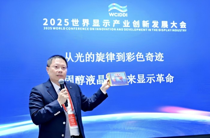 虹彩光電董事長廖奇璋在「2025世界顯示產(chǎn)業(yè)創(chuàng)新發(fā)展大會(huì)」以全彩電子紙技術(shù)為主題進(jìn)行演講