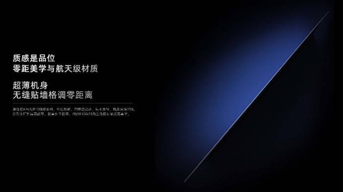 R10觀感系列不僅在功能上追求松弛,更在外觀設(shè)計(jì)上實(shí)現(xiàn)美學(xué)與實(shí)用的統(tǒng)一,讓電視成為家居風(fēng)格的加分項(xiàng)。其采用四等邊設(shè)計(jì)與純平美背,機(jī)身厚度較傳統(tǒng)電視減薄20%,以≤60mm的超薄尺寸實(shí)現(xiàn)無(wú)縫貼墻效果。相較于普通藝術(shù)電視>120mm的“厚重小書(shū)包”機(jī)身,R10徹底打破了設(shè)備與墻面的視覺(jué)割裂感,無(wú)論是現(xiàn)代簡(jiǎn)約風(fēng)還是輕奢風(fēng)家居,都能自然融入,營(yíng)造電視即裝飾的格調(diào)。機(jī)身選用航天級(jí)鈦合金材質(zhì),集優(yōu)質(zhì)、美觀、耐用于一體,每一塊面板、每一條線條都彰顯高級(jí)感。內(nèi)部搭載航發(fā)級(jí)涵道散熱系統(tǒng),既保障設(shè)備長(zhǎng)期穩(wěn)定運(yùn)行,又能有效省能省耗,兼顧顏值與實(shí)用性,讓用戶無(wú)需擔(dān)心設(shè)備易損壞、能耗高等問(wèn)題,進(jìn)一步強(qiáng)化使用松弛感。