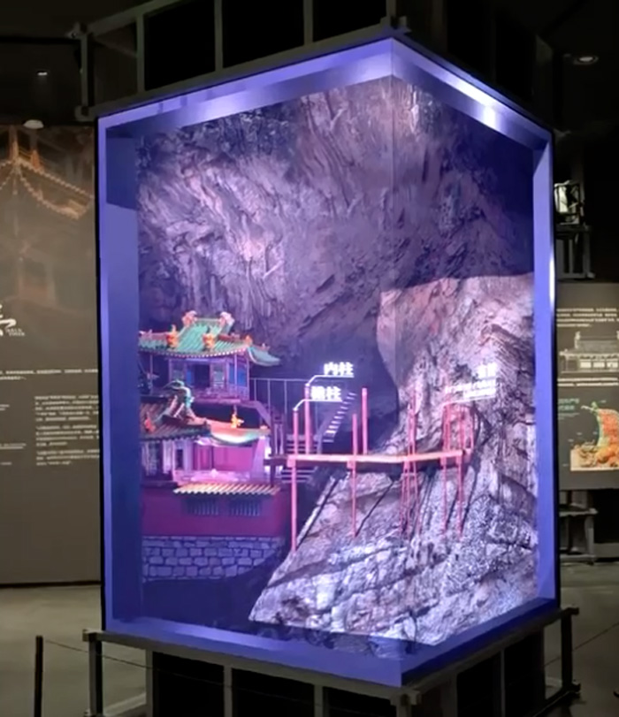 “古建尋跡”展區(qū)內(nèi),直角裸眼3D顯示屏以極具沖擊力的視覺效果呈現(xiàn)懸空寺之美,讓游客以“游戲視角”探索山西古建的真實(shí)世界,了解傳統(tǒng)文化與建筑技藝背后的古人智慧。