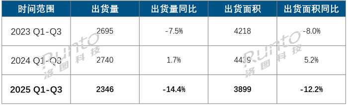 事實上,今年上半年市場曾經(jīng)大幅衰退,出貨量和出貨面積同比下降了25.6%和21.7%。結(jié)合第三季度的表現(xiàn),前三季度累計來看,出貨總量為234.6萬片,同比下降14.4%;出貨面積為389.9萬平方米,同比下降12.2%。因此,第三季度實際上是今年市場的拐點。