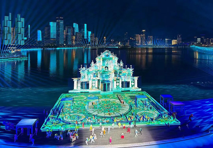 投影機采用非接觸式投射,不存在與舞臺造景(如水體、機械結(jié)構(gòu))發(fā)生物理沖突的風(fēng)險,最大程度保障了演藝人員的人身安全及舞臺機械的運行穩(wěn)定。