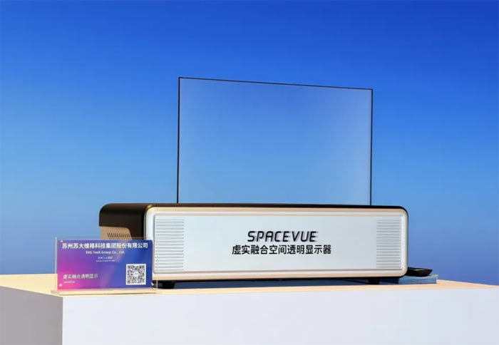 蘇大維格自主研發(fā)的虛實融合空間透明顯示設(shè)備可在深度空間中成像,實現(xiàn)“物理空間”與“虛擬顯示”的融合顯示;诖罂趶娇臻g成像透明波導(dǎo)的空間顯示模式,相比傳統(tǒng)平板,虛實疊加顯示系統(tǒng)既具備平面顯示的形態(tài)特征,又具備遠(yuǎn)距離空間虛擬成像帶來的超百寸的顯示畫幅。