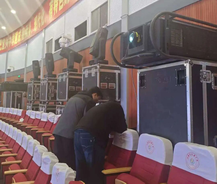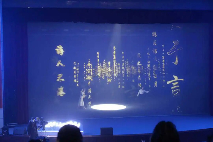 無錫羿飛教育此次提供的全息解決方案,采用行業(yè)領(lǐng)先的高流明激光投影機(jī),亮度高達(dá)30000流明以上,確保影像在復(fù)雜光照環(huán)境下依舊清晰絢麗。沙幕系統(tǒng)則選用高透光納米材質(zhì),透光率超90%,配合精準(zhǔn)的光學(xué)校準(zhǔn)技術(shù),使全息影像懸浮于空中,無介質(zhì)遮擋,真正實(shí)現(xiàn)“裸眼3D”效果。舞臺(tái)場景切換流暢自然,為《心壺》中細(xì)膩的情感轉(zhuǎn)折與意境轉(zhuǎn)換提供了堅(jiān)實(shí)技術(shù)支撐。