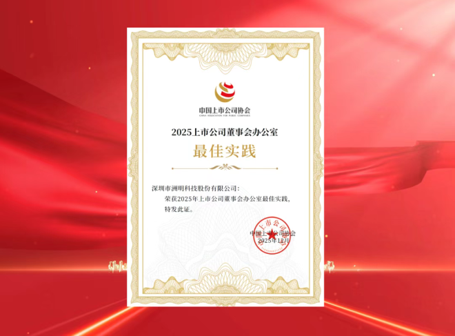 12月,洲明再次獲得由中國上市公司協(xié)會嚴格評審的“2025年上市公司董事會辦公室最佳實踐案例”,充分體現(xiàn)了資本市場對公司在治理高效運作、信息披露合規(guī)有效、積極回應市場關切等方面長期表現(xiàn)的肯定。