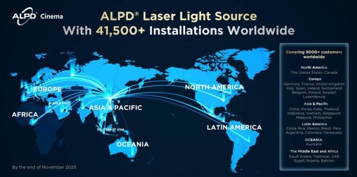 截至目前,ALPD®激光光源已進(jìn)入全球多個(gè)市場全球影院市場,并通過技術(shù)迭代與服務(wù)升級,持續(xù)贏得客戶信任。為此,ALPD®品牌借力國際展會等機(jī)會,加速拓展海外市場。伴隨海外用戶群體規(guī)模的不斷壯大。未來,ALPD®將繼續(xù)與全球影院伙伴攜手,共同推動放映技術(shù)向更高效、更優(yōu)質(zhì)的方向演進(jìn)。
