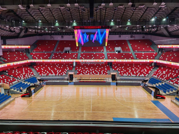 館內(nèi)斗屏采用洲明UslimIII系列LED顯示屏,二、三層環(huán)形屏則使用P4顯示屏,結(jié)合智能化系統(tǒng)與多媒體技術(shù),為觀眾呈現(xiàn)實時比分、精彩回放與賽事信息,讓每一次擊打與對抗都清晰可見。