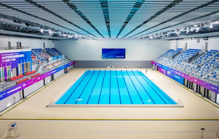 建筑面積逾2.7萬㎡,賽事期間將舉行救生(8月8-9日)與潛水(8月10-11日)比賽。館內(nèi)的計分屏采用洲明集團(tuán)旗下藍(lán)普LED顯示屏,以高亮度、高刷新、高防護(hù)的技術(shù)優(yōu)勢,為水下速度與力量的比拼提供精準(zhǔn)計時與清晰呈現(xiàn)。