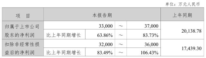 公司歸屬于上市公司股東的凈利潤預(yù)計(jì)為 33,000 萬元至 37,000 萬元,較上年同期的 20,138.78 萬元增長 63.86% 至 83.73%;扣除非經(jīng)常性損益后的凈利潤預(yù)計(jì)為 32,000 萬元至 36,000 萬元,較上年同期的 17,439.30 萬元增長 83.49% 至 106.43%,盈利規(guī)模與增長幅度均表現(xiàn)亮眼。