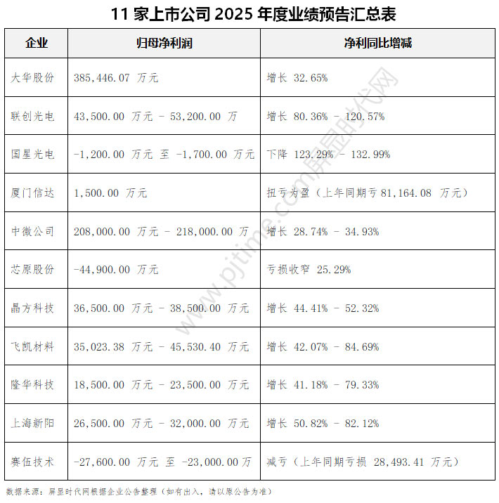 大華股份、聯(lián)創(chuàng)光電、國(guó)星光電、廈門(mén)信達(dá)、中微公司、賽伍技術(shù)等11企發(fā)布2025年度業(yè)績(jī)快報(bào)/預(yù)告