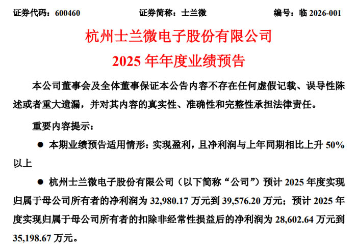 士蘭微、瑞豐光電、華映科技、格科微、藍黛科技、蘇大維格等14企發(fā)布2025年度業(yè)績預(yù)告