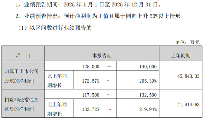 與上年同期相比,2025 年歸母凈利潤將增加 10,993.39 萬元至 17,589.42 萬元,扣非歸母凈利潤將增加 3,432.61 萬元至 10,028.64 萬元。