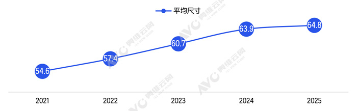 盡管整體市場(chǎng)低迷,但存量換機(jī)用戶的需求升級(jí)趨勢(shì)極為顯著,大屏化已成為不可逆的主流方向。2025年,中國(guó)彩電市場(chǎng)平均尺寸逼近65英寸,較2024年的63.9英寸進(jìn)一步提升,創(chuàng)下行業(yè)新高。這一變化背后,一方面是消費(fèi)者對(duì)沉浸式影音體驗(yàn)的追求,大尺寸電視能夠更好地滿足家庭觀影、游戲、健身等多元化場(chǎng)景需求;另一方面,面板廠良率提升與成本控制優(yōu)化,推動(dòng)大尺寸產(chǎn)品價(jià)格持續(xù)下探,降低了消費(fèi)者的購(gòu)買門檻。