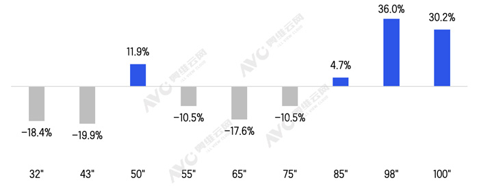 彩電市場(chǎng)重點(diǎn)尺寸表現(xiàn)