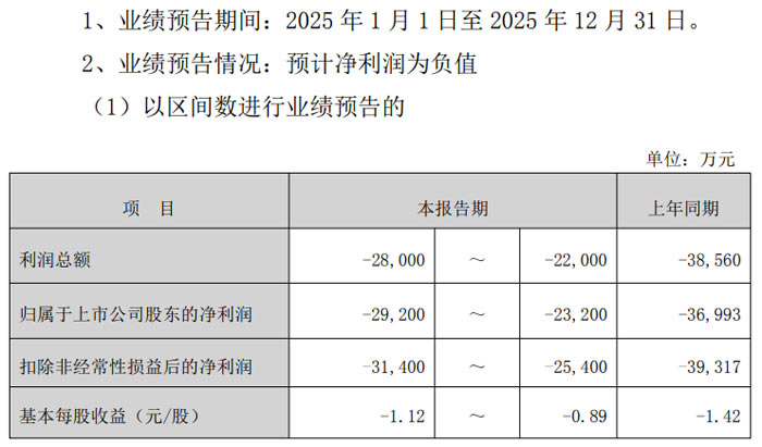 利潤(rùn)總額預(yù)計(jì)為 - 28,000 萬元至 - 22,000 萬元,上年同期為 - 38,560 萬元;歸屬于上市公司股東的凈利潤(rùn)預(yù)計(jì)為 - 29,200 萬元至 - 23,200 萬元,上年同期為 - 36,993 萬元;扣除非經(jīng)常性損益后的凈利潤(rùn):預(yù)計(jì)為 - 31,400 萬元至 - 25,400 萬元,上年同期為 - 39,317 萬元;