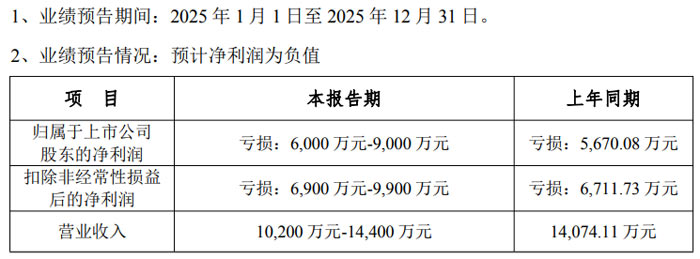 寧波 GQY 視訊股份有限公司(證券代碼:300076,證券簡(jiǎn)稱:GQY 視訊)發(fā)布 2025 年度業(yè)績(jī)預(yù)告。公司預(yù)計(jì) 2025 年度凈利潤(rùn)為負(fù)值;仡櫳夏晖谪(cái)務(wù)數(shù)據(jù),公司歸屬于上市公司股東的凈利潤(rùn)虧損 5670.08 萬元,扣除非經(jīng)常性損益后的凈利潤(rùn)虧損 6711.73 萬元,營業(yè)收入為 14074.11 萬元。