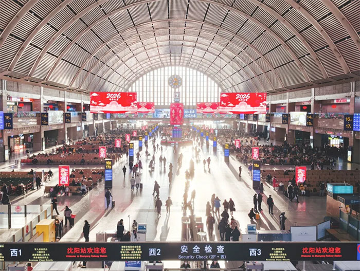 全國(guó)鐵路首例!洲明雙面屏亮相沈陽(yáng)站,溫情護(hù)航2026春運(yùn)